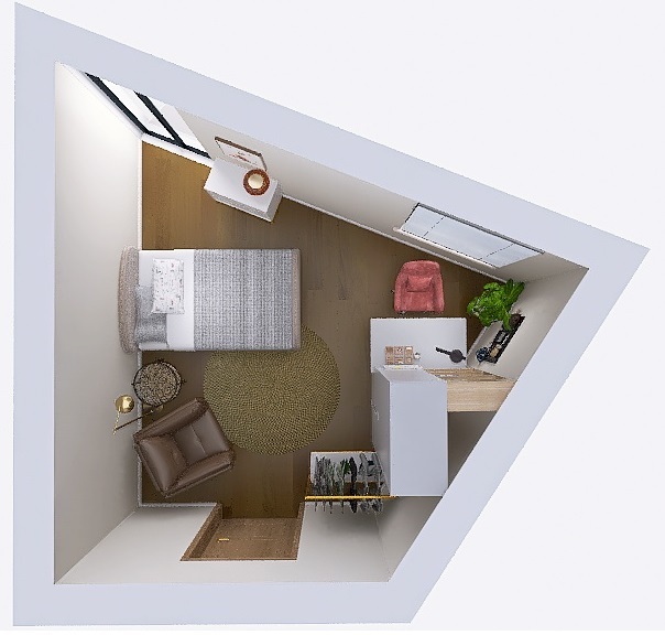 Спланировать дествую для девочки школьницы. Сложность в том, что комната нестандартной формы