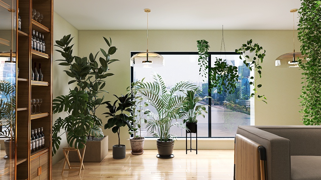 Диана совладелица сети цветочных магазинов и как и большинство успешных людей работает с тем, что любит всей душой. Поэтому обязательным условием было наличие в гостиной большого количества крупных растений